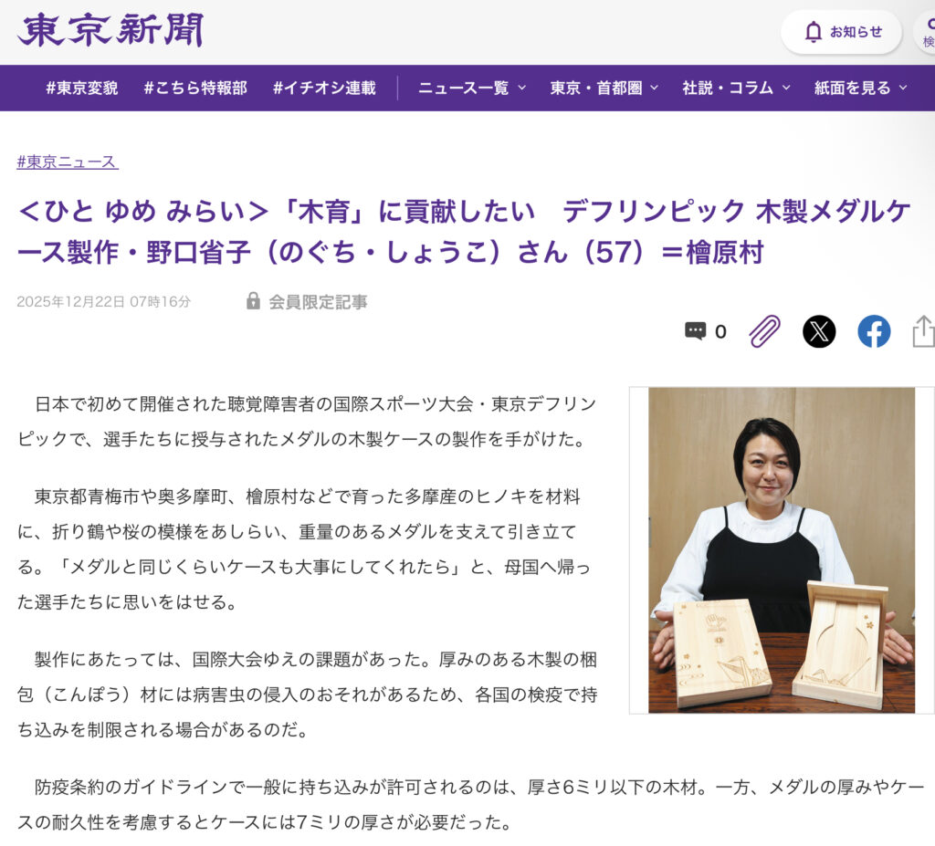 先日12/22(月)にデフリンピックのメダルケースの納品実績に取材頂き、東京新聞に掲載いただきました。
