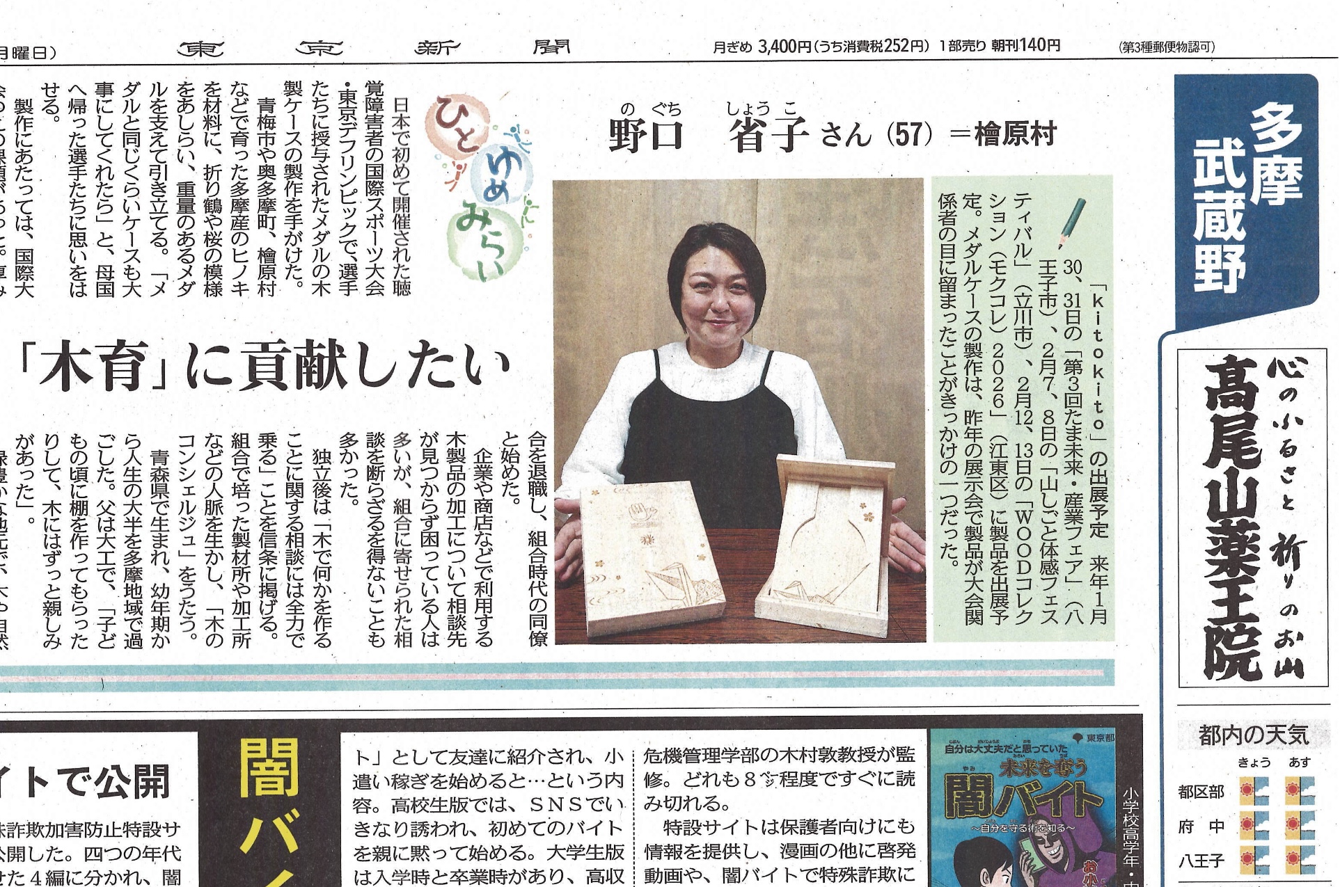 東京新聞に掲載されました