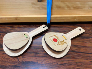 多摩産材ひのきを使用した、どんぐり形の形をしたコマです。ガチャガチャの中身、ワークショップなどに使用ができ、大人〜子供までとても人気な商品です。